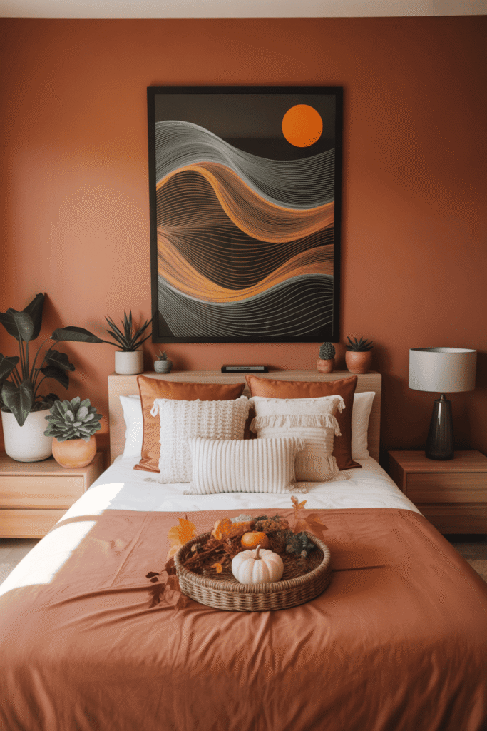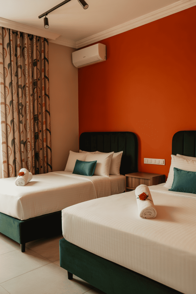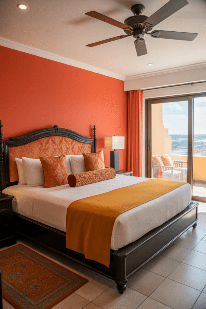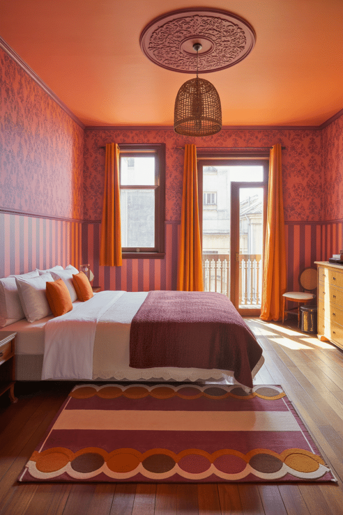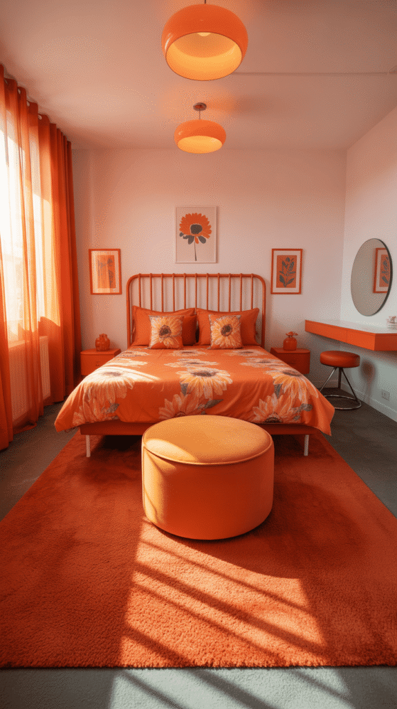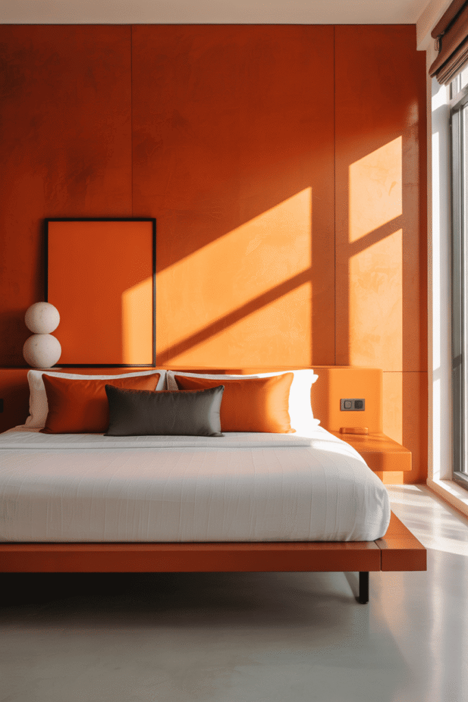 Le « Dopamine Decor » à son apogée. Un design intérieur orange est la garantie d’un réveil souriant. Les tons solaires sur les murs maintiennent une humeur positive du matin au soir.