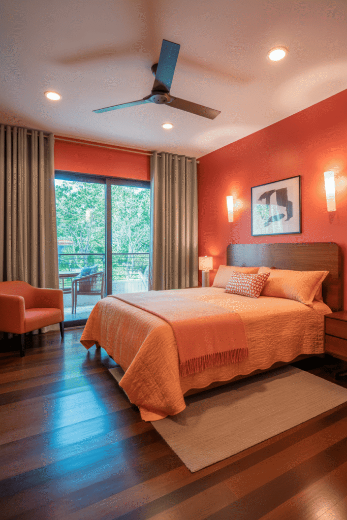 Imaginez une chambre qui vous enlace comme les rayons d’un doux coucher de soleil. Opter pour l’orange, c’est insuffler une dose immédiate de chaleur et de vitalité à son espace intime. Cette teinte singulière réussit le pari d’être à la fois énergisante et profondément apaisante, transformant la pièce en un sanctuaire où le cœur s’allège.
