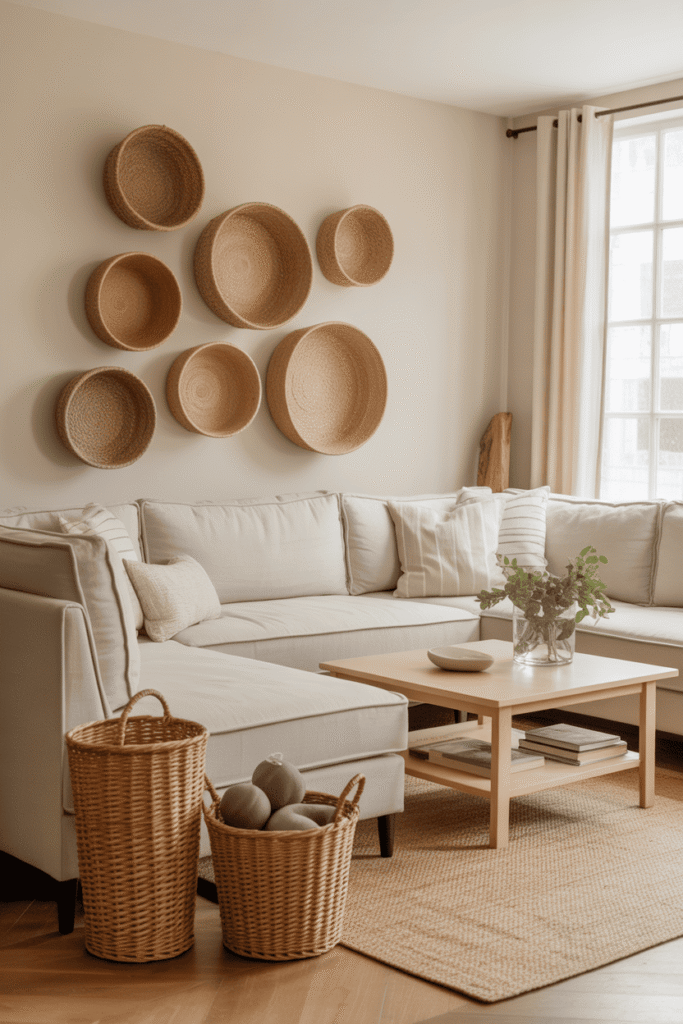 Le style « organique » est la tendance du moment. Pour une ambiance décontractée, misez sur des matériaux bruts : paniers en osier, plateaux en pierre, céramique artisanale ou textiles en lin lavé. Ces éléments créent un pont entre votre intérieur et la nature, renforçant le côté zen du beige tout en apportant du relief à la décoration.