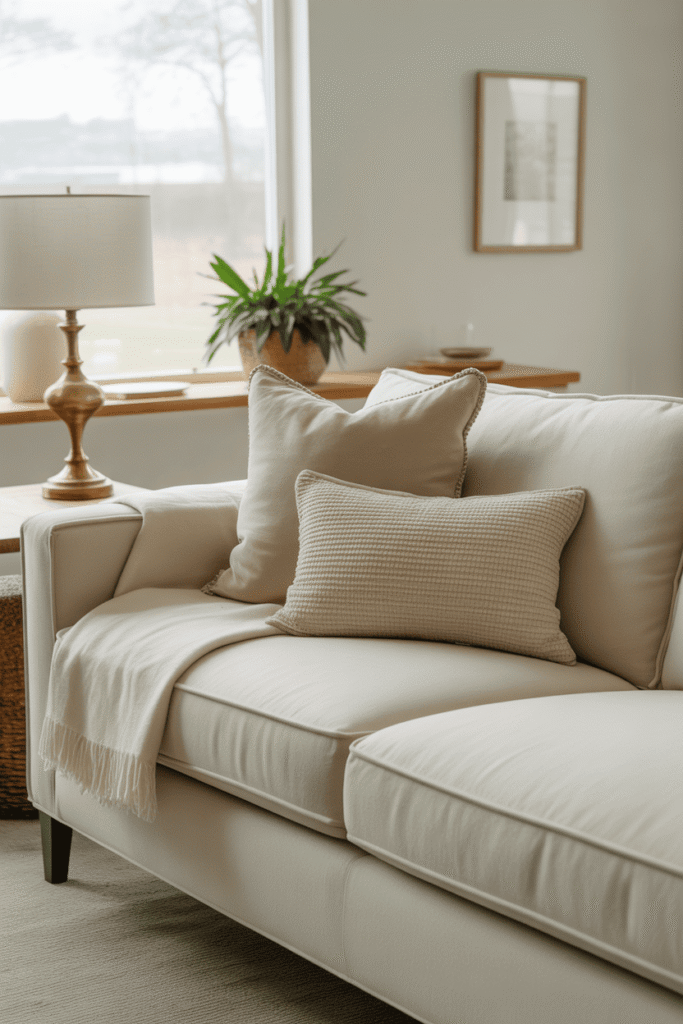 Dans une palette neutre, la texture est reine. Pour éviter l’effet « salle d’attente », multipliez les matières. Associez la douceur d’un coussin en velours à la rusticité d’un tapis en jute, le tout rehaussé par un plaid en grosse maille et des rideaux en lin léger. L’introduction de matériaux comme la laine bouclée, le cuir ou le rotin invite au toucher et rend l’espace infiniment plus cosy.