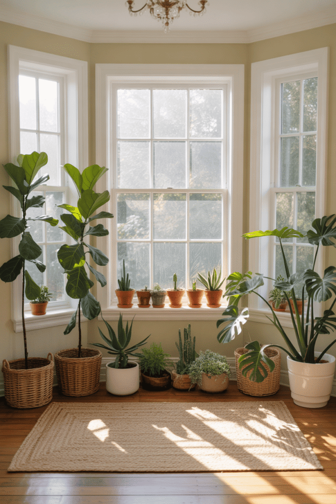 Le beige est la toile de fond idéale pour faire ressortir la nature. Invitez la verdure chez vous ! Le vert vibrant des plantes d’intérieur (Ficus, Monstera, Pilea) tranche magnifiquement avec les tons neutres. Disposées près des fenêtres ou en hauteur sur des étagères, elles purifient l’air tout en apportant cette touche de vie et de fraîcheur indispensable.