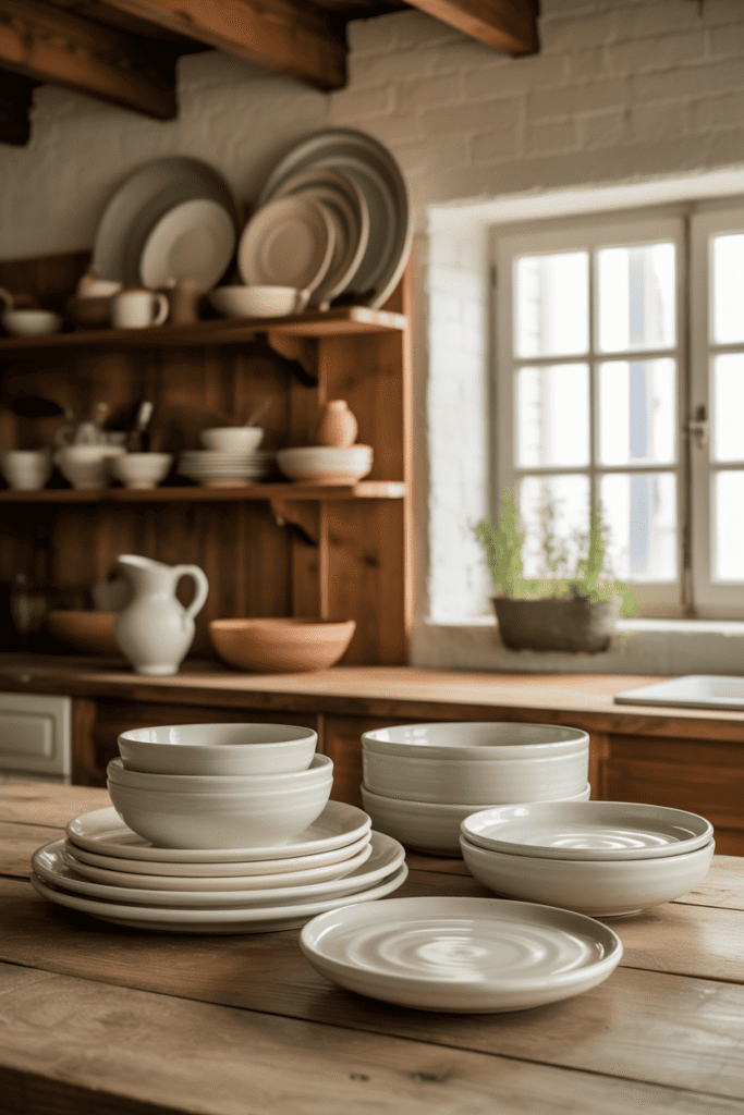 Exposés sur vos étagères ouvertes, ces bols et assiettes aux tons terreux renforcent l’authenticité de la pièce. Chaque pièce étant unique, elle contribue à faire de votre cuisine un espace personnel, loin des standards des catalogues, où l’artisanat est mis à l’honneur.