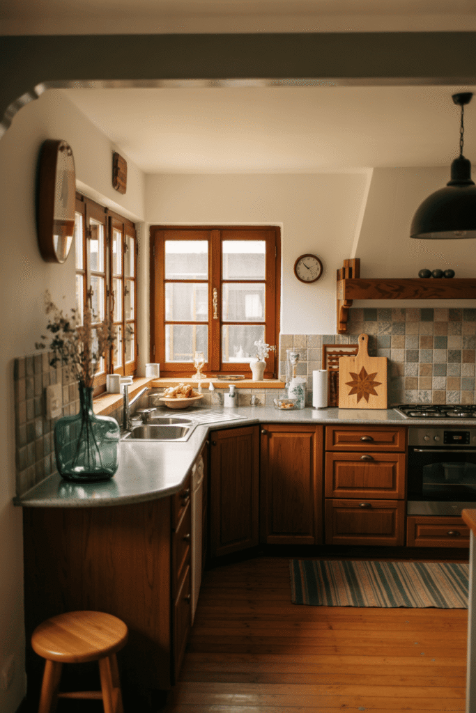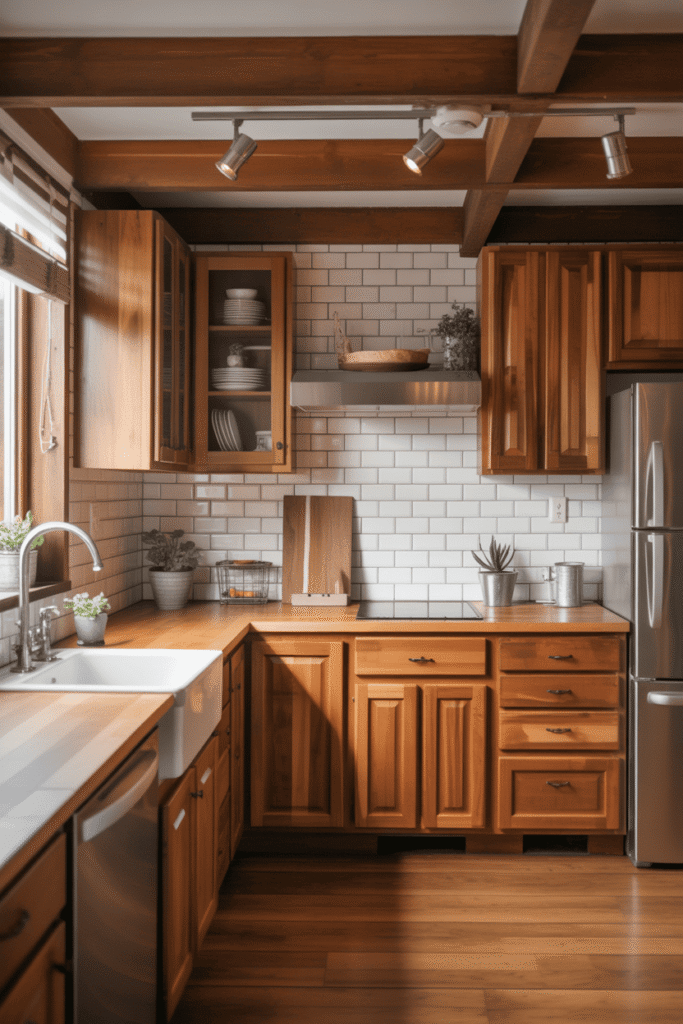 Oubliez le blanc clinique ; la cuisine rustique célèbre les nuances enveloppantes. Une palette réussie mise sur des tons qui réchauffent l’âme : le miel du bois, l’ocre de la terre, le crème des murs. Ces couleurs créent une toile de fond apaisante et sécurisante.