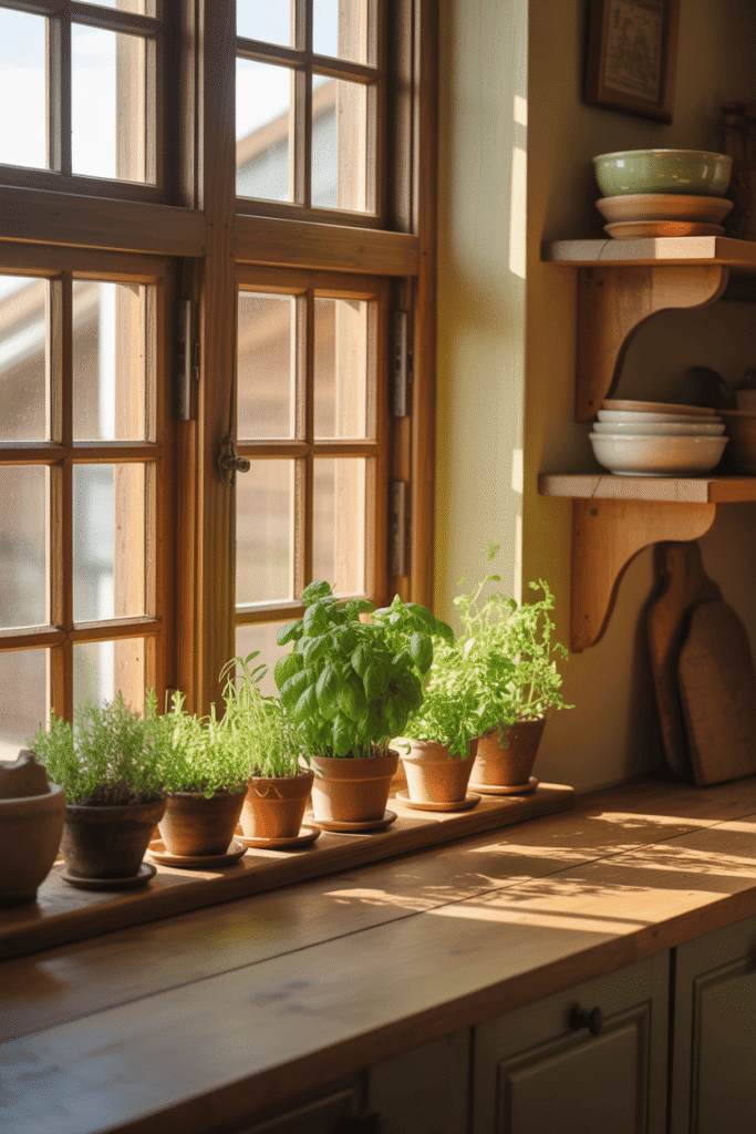 Le style rustique célèbre la nature. Quoi de mieux qu’un mini-potager d’intérieur pour lier l’utile à l’agréable ? Alignez des pots en terre cuite sur le rebord de la fenêtre avec du basilic, du romarin ou de la menthe.